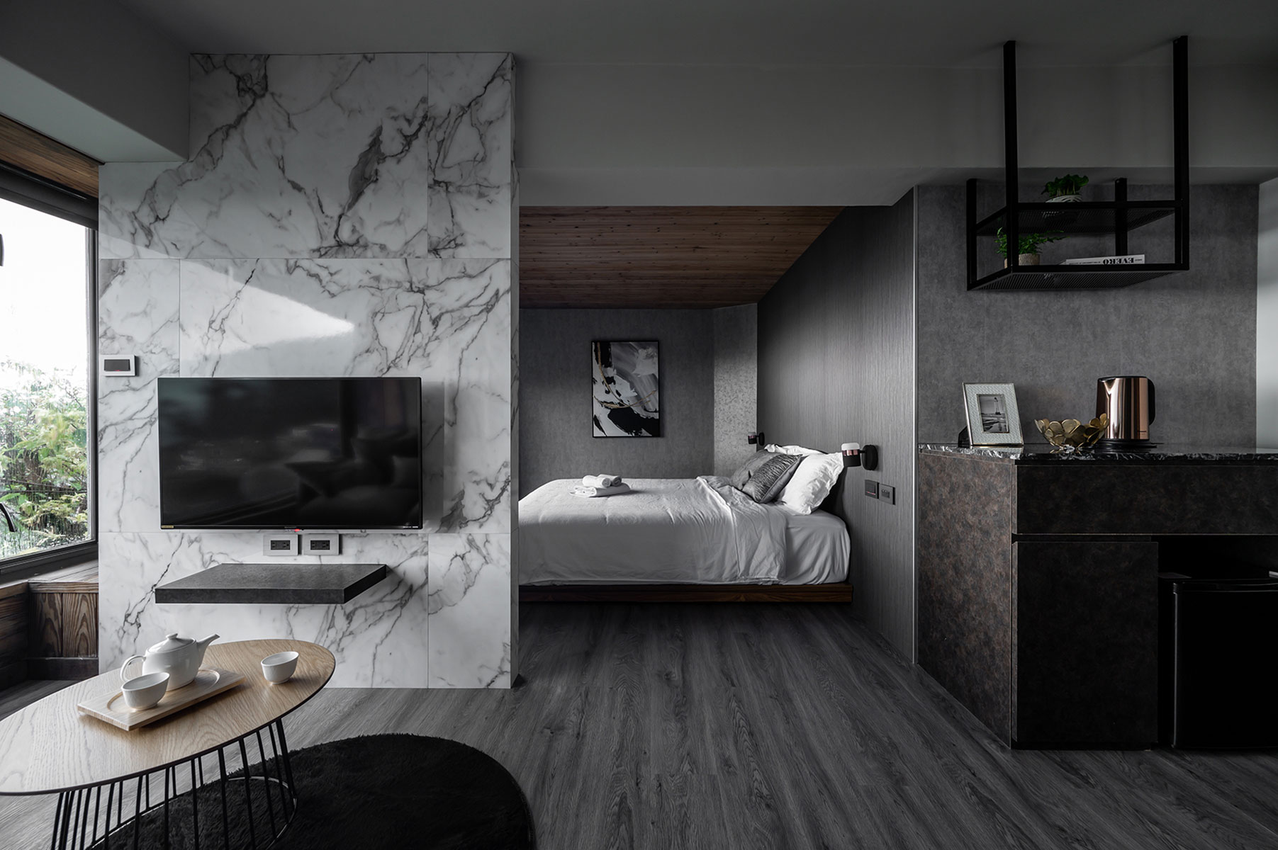 為予住客受滋潤的旅程,我們為每間房設計主題風格,「浪漫輕貴族」、「抹茶綠色小清新」、「松與泥灰的羈絆」,希望住客除了享受山海,還有不同的空間體驗。