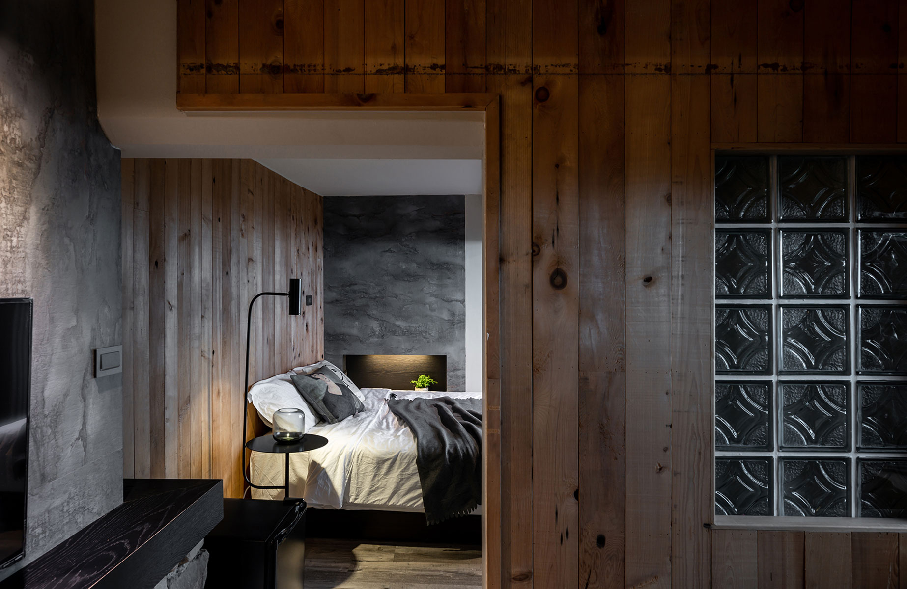漫山逸旅由透天老屋改造,建地為不規則近三角狀,且室內有舊裝修,故如何以最經濟的方式善用原有裝潢、新舊交接、修飾畸零空間、展現最佳效果,是設計師與民宿主人煞費苦心之處。