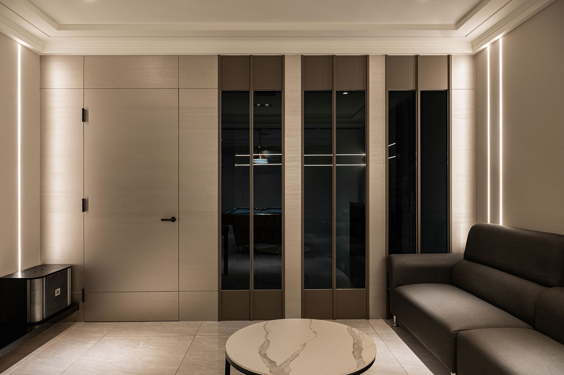 - 建材:線板、玫瑰金鋁條、義大利大板磚、烤漆、特殊漆、烤漆玻璃、栓木皮染色、天然白金橡木、灰鏡、賽礫石、皮革繃板
