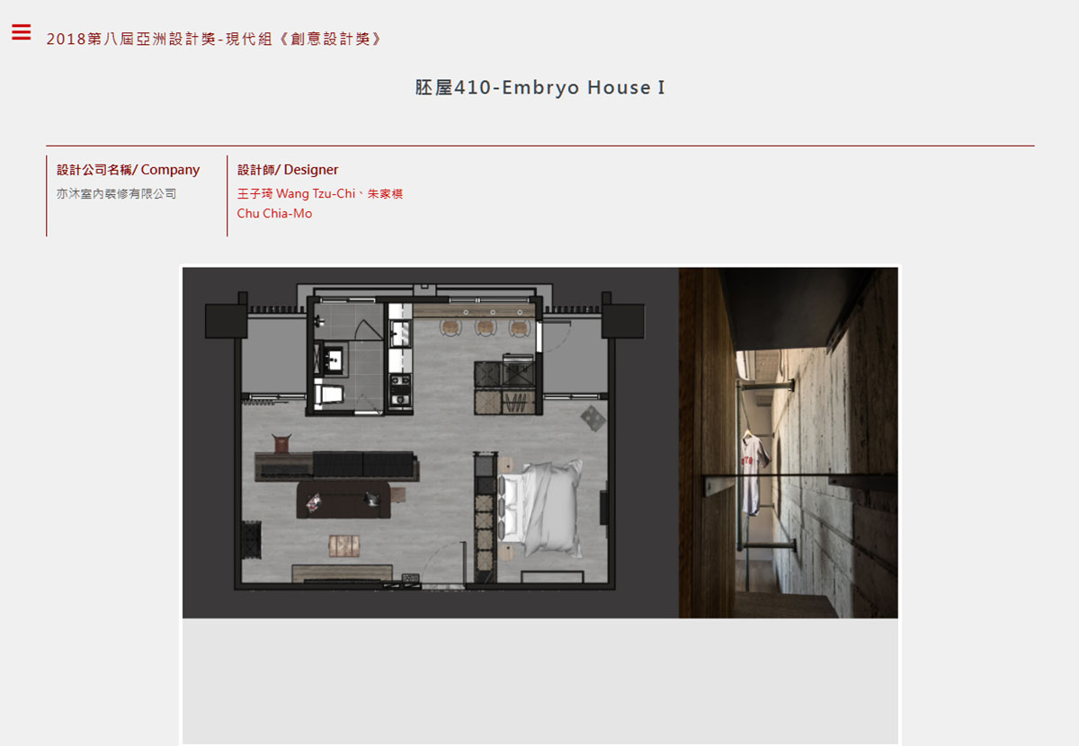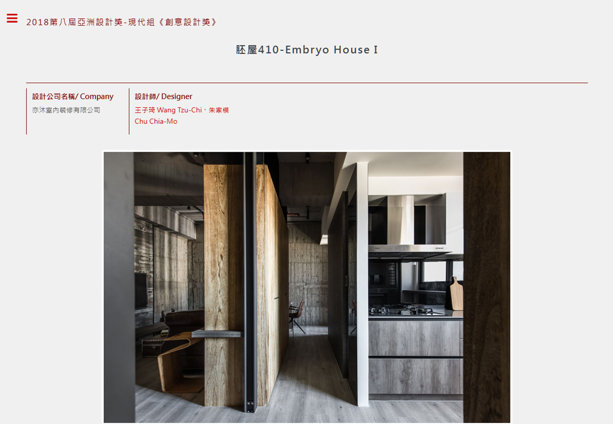 2018亞洲設計獎《胚屋410-Embryo House I》創意設計獎