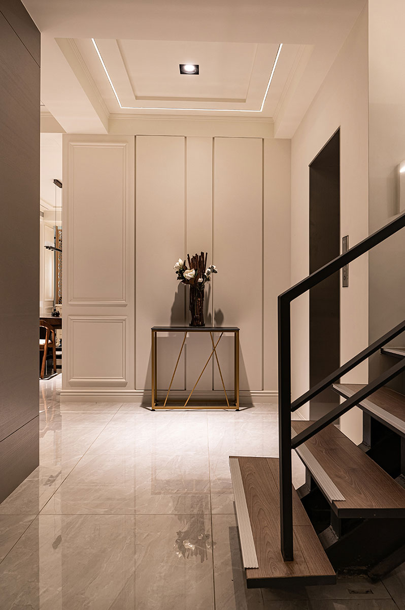 - 建材:線板、玫瑰金鋁條、義大利大板磚、烤漆、特殊漆、烤漆玻璃、栓木皮染色、天然白金橡木、灰鏡、賽礫石、皮革繃板
