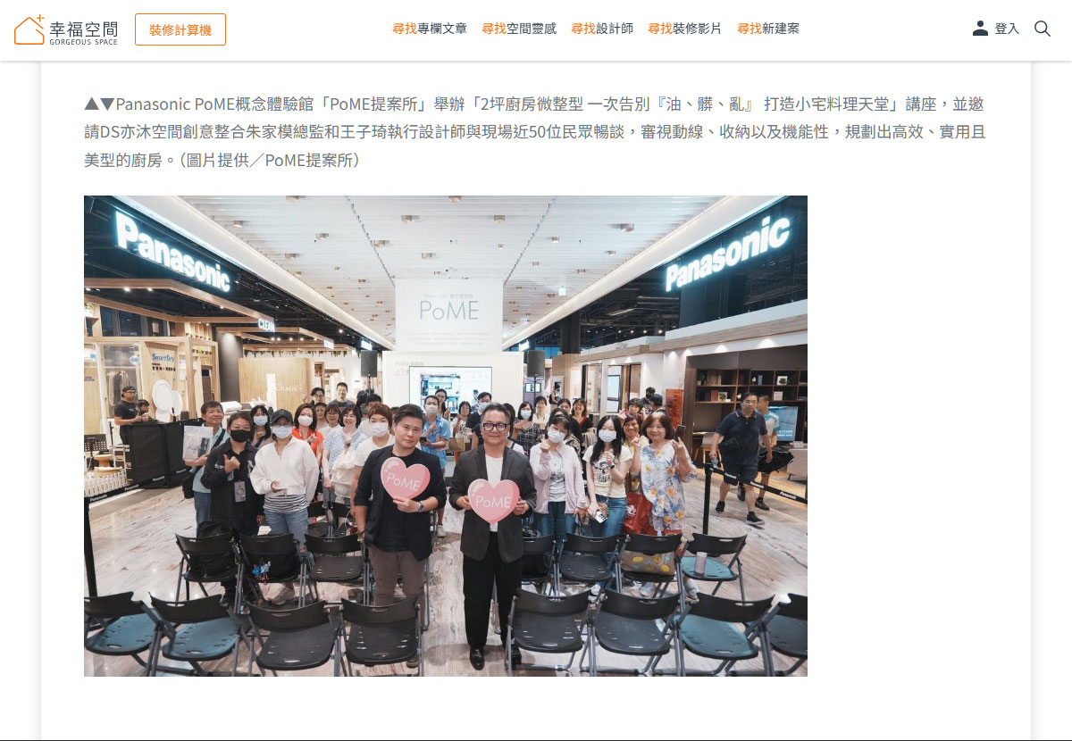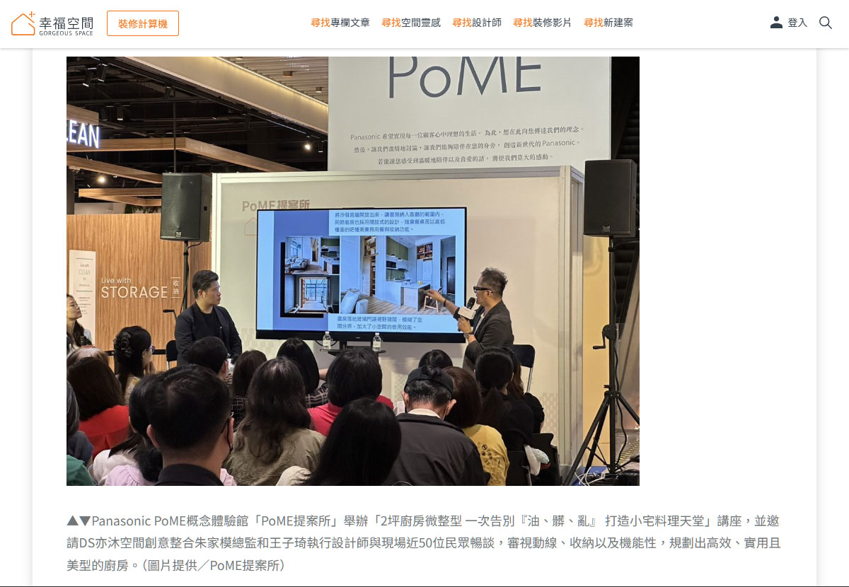 由Panasonic PoME概念體驗館「PoME提案所」以「2坪廚房微整型 一次告別『油、髒、亂』 打造小宅料理天堂」為題,特別邀請來自竹北的DS亦沐空間創意整合的朱家模總監和王子琦執行設計師就實際案例分享,從老屋翻新的視角為出發點,探討居住者的需求,審視空間動線的重要性。