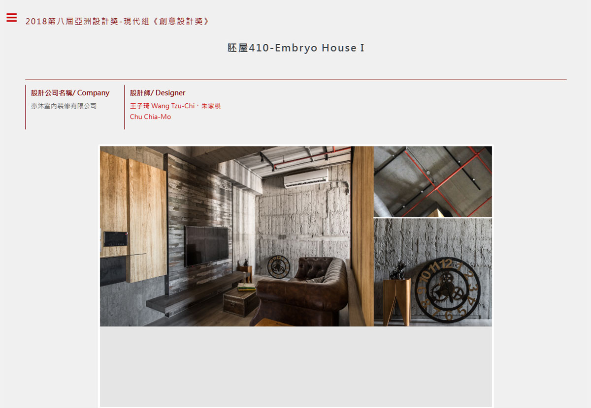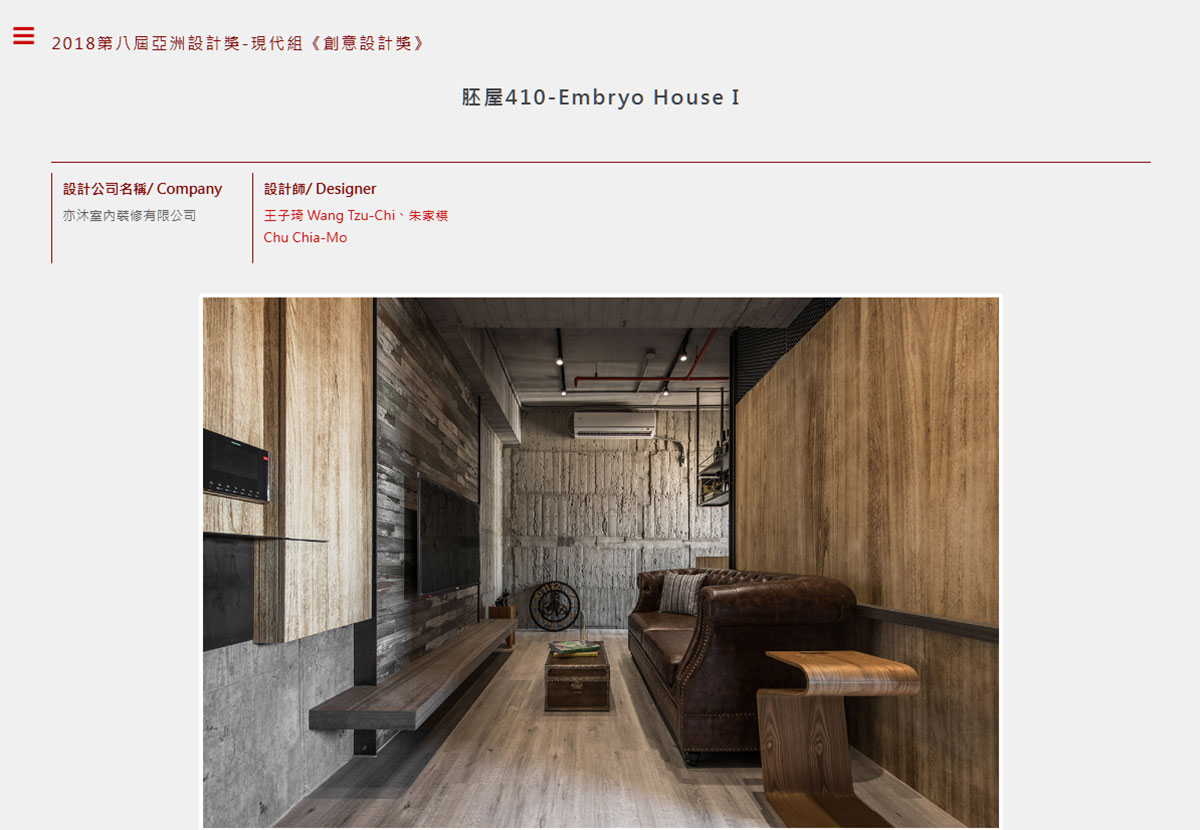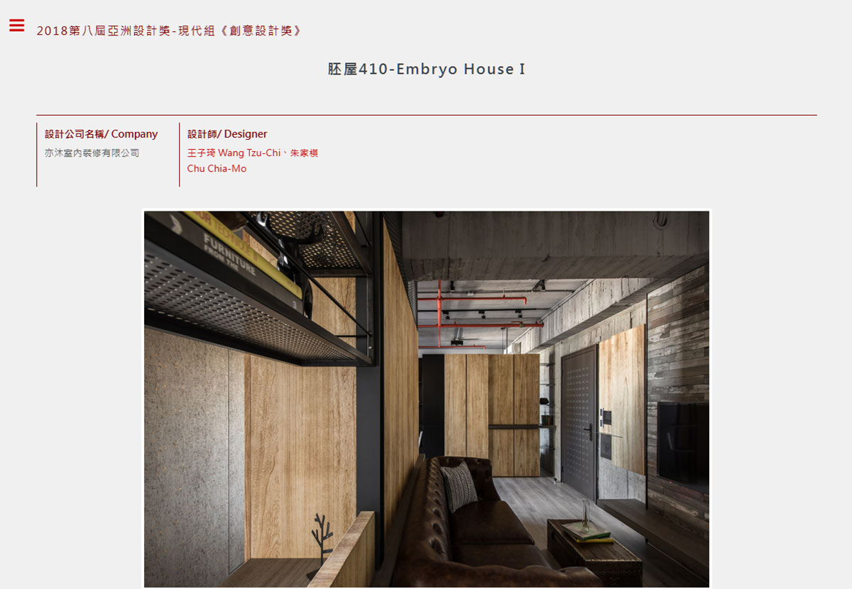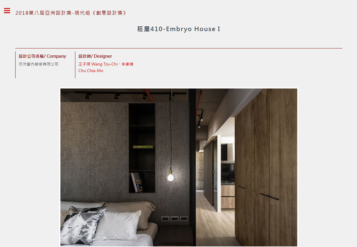 2018亞洲設計獎《胚屋410-Embryo House I》創意設計獎